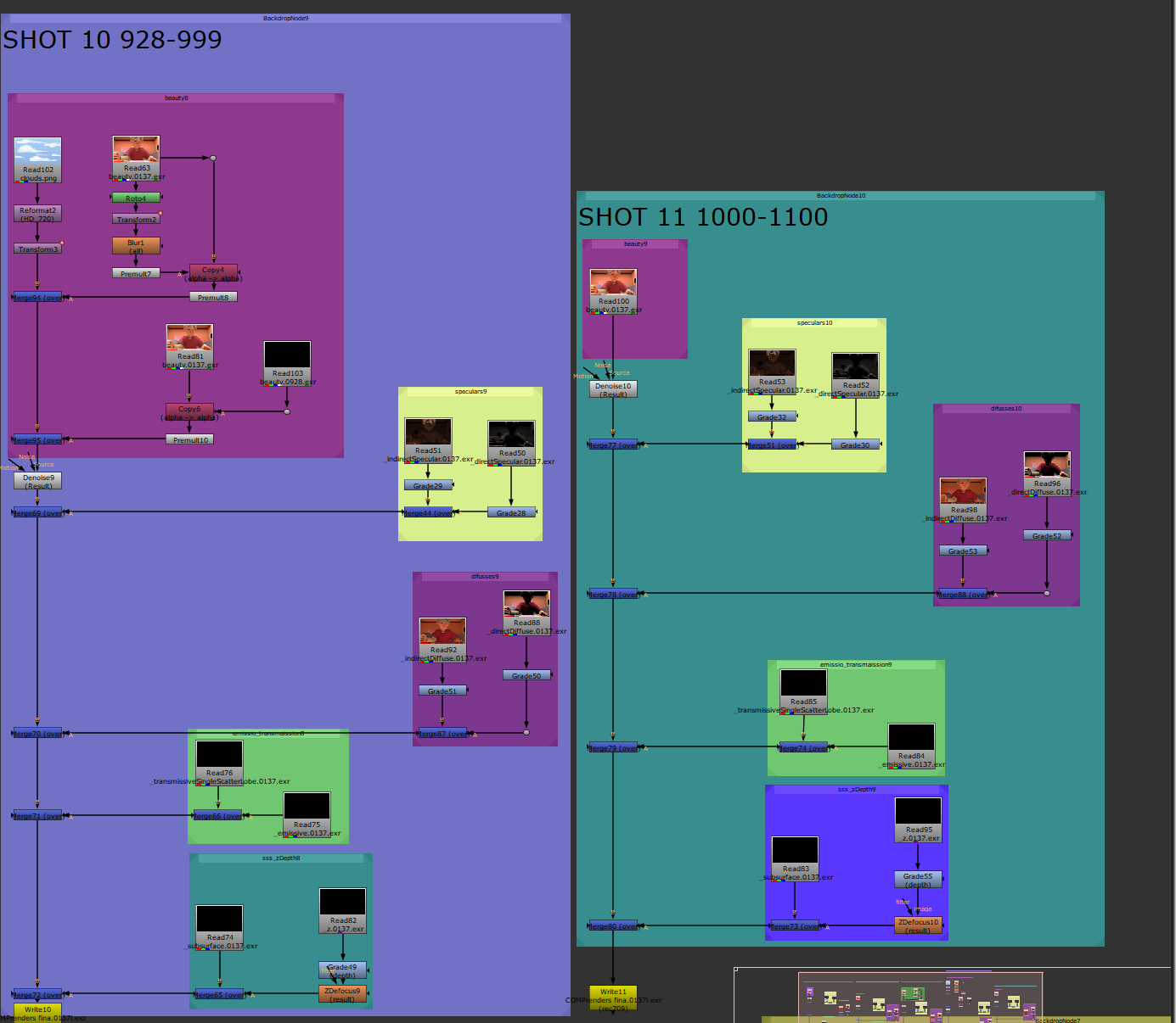 To further this effort, we also opted to make use of Pixar's Renderman render engine. This is optimised for this cartoony style as well as providing numerous other optimisations to speed up rendering.