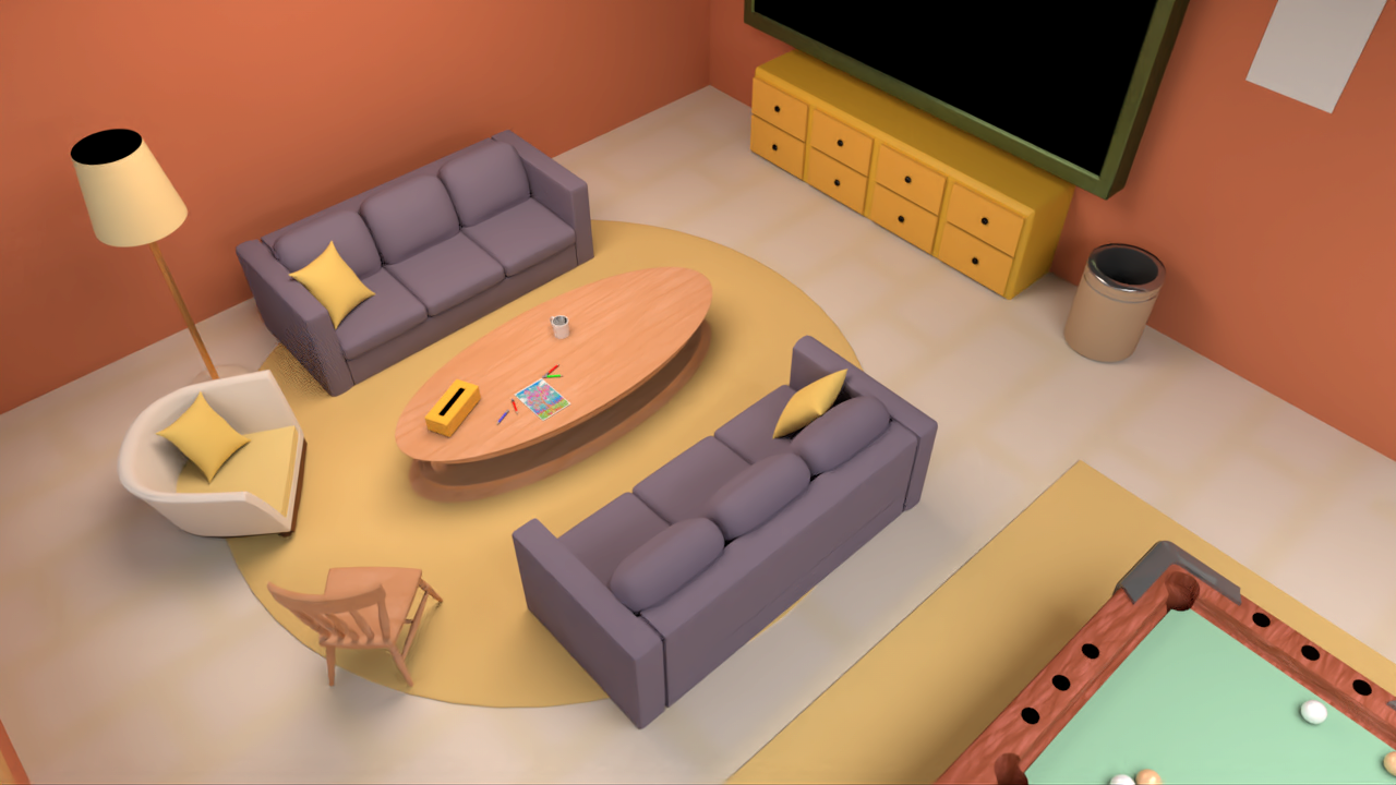 To further this effort, we also opted to make use of Pixar's Renderman render engine. This is optimised for this cartoony style as well as providing numerous other optimisations to speed up rendering.